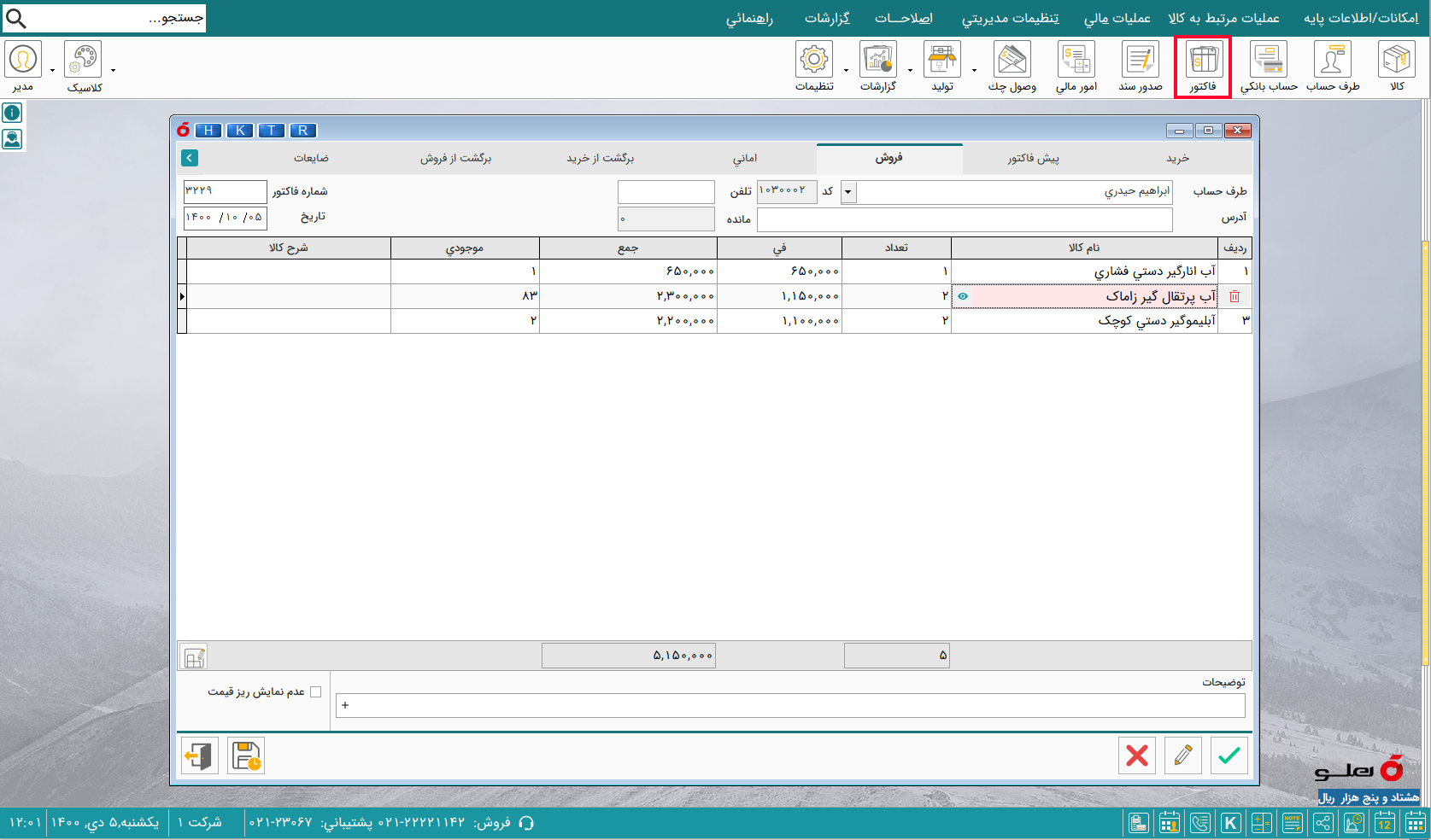 • ثبت کالاها بهصورت اشانتیون (مبلغ صفر) در فاکتور
