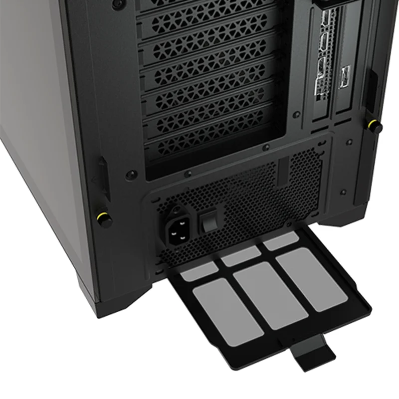 • حداکثر ده پایه فن 120 میلیمتری، سه عدد فن SP RGB ELITE با فناوری CORSAIR AirGuide و سه مکان جداگانه رادیاتور 360 میلیمتری