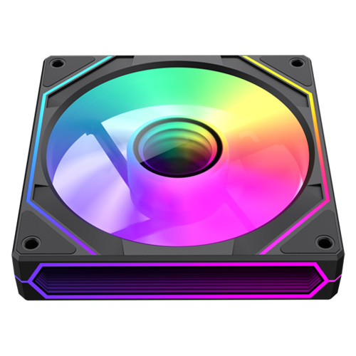 - نورپردازی ARGB آینه بینهایت سهطرفه روی فریم فن: افکت Infinity Space روی سه ضلع فن با طراحی هندسی آینهای برای جلوه نوری عمیق، یکپارچه و چشمنواز