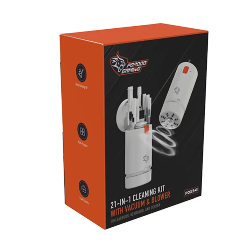 کیت تمیزکاری مکنده و دمنده 21 کاره پرودو مدل PDX541 یک ابزار چند منظوره و کاربردی برای افرادی است که به دنبال تمیز کردن دقیق و حرفهای دستگاههای الکترونیکی خود هستند. این کیت با 21 ابزار مختلف، تمامی نیازهای شما برای تمیز کردن کیبورد، هندزفری بیسیم، مانیتور و حتی لنز دوربین را برطرف میکند. طراحی ارگونومیک و وزن سبک آن باعث میشود تا استفاده از این کیت آسان و بدون خستگی باشد. علاوه بر این، موتور 13000 دور در دقیقه و قابلیت تنظیم سرعت در دو سطح مختلف، کارایی و دقت بیشتری در تمیزکاری ارائه میدهد. با باتری داخلی قابل شارژ و ابزارهای متنوع، این کیت انتخابی عالی برای استفاده روزمره است. این کیت به یک باتری داخلی با ظرفیت 600 میلیآمپرساعتی مجهز است که پس از شارژ کامل، بین 1.5 تا 3 ساعت کارایی دارد. باتری قابل شارژ و کارکرد طولانی مدت این محصول، آن را به یک ابزار کاربردی برای استفاده در هر زمان و مکانی تبدیل کرده است. کیت تمیزکاری پرودو مدل PDX541 با ابعاد 124.5*61 میلیمتر و وزن 200 گرم طراحی شده است که بسیار سبک و قابل حمل میباشد.