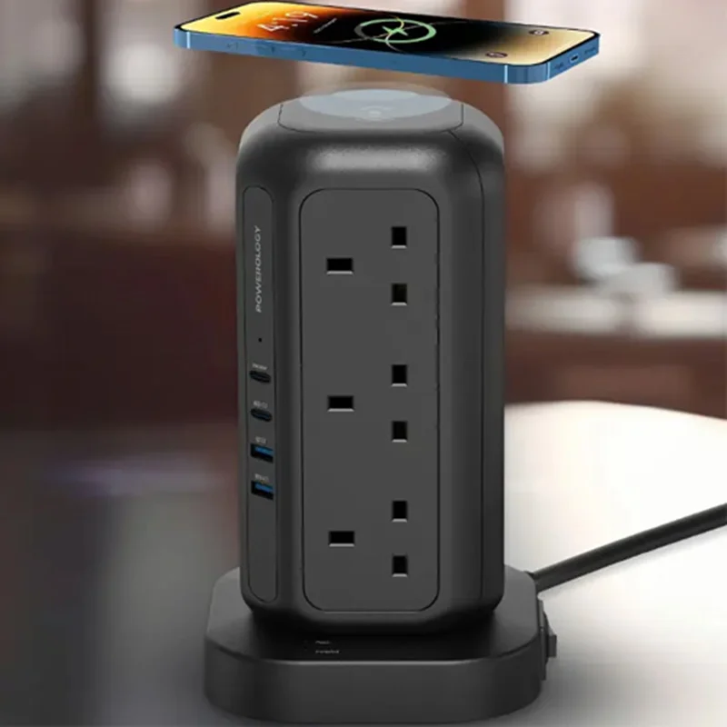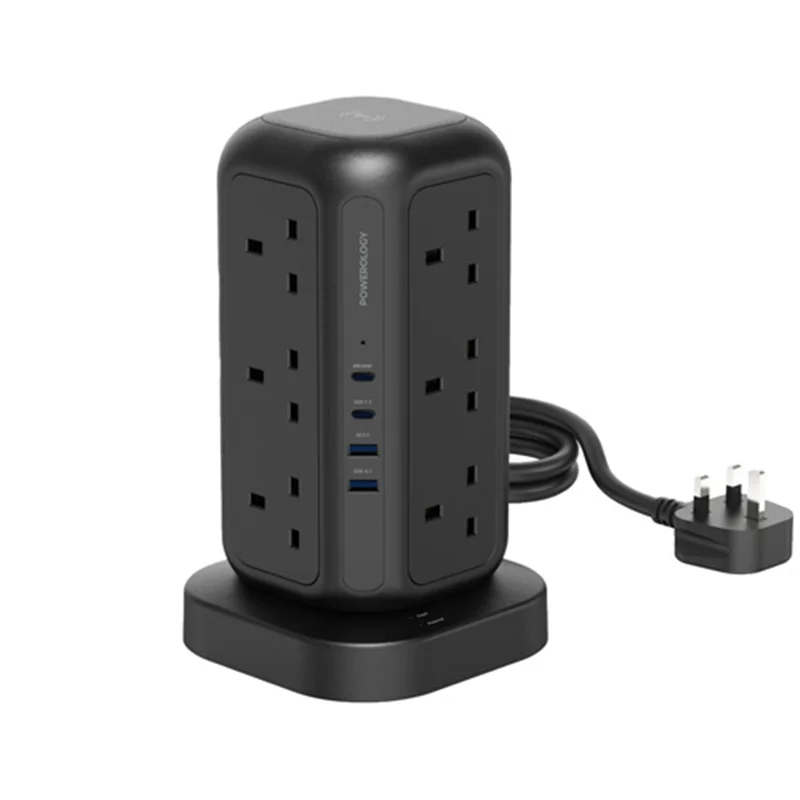 چند راهی برق و شارژر پاورولوژی مدل 12 AC Sockets GaN Tower Hub یک انتخاب عالی برای افرادی است که نیاز به چندین پورت برق و قابلیتهای شارژ سریع دارند. با استفاده از فناوری GaN، طراحی برج مانند، و ویژگیهای ایمنی مختلف، این دستگاه هم کاربردی و هم ایمن است و میتواند تجربهای راحت و بهینه از اتصال و شارژ دستگاهها فراهم کند. این محصول یک چندراهی برق (Multiprise) است که به شکل برج طراحی شده و توسط شرکت پاورولوجی تولید میشود. این دستگاه دارای ۱۲ پریز برق AC است که به شما امکان میدهد تعداد زیادی دستگاه برقی را به طور همزمان به آن متصل کنید. این ویژگی برای خانهها یا دفاتر پرجمعیت که نیاز به پریزهای متعدد دارند بسیار مناسب است. استفاده از فناوری GaN (گالیم نیترید) باعث میشود این دستگاه کوچکتر، سبکتر و کارآمدتر باشد. GaN همچنین باعث تولید حرارت کمتر و افزایش سرعت شارژ میشود. طراحی برجی این محصول باعث میشود فضای کمتری اشغال کند و دسترسی به پریزها آسانتر باشد.